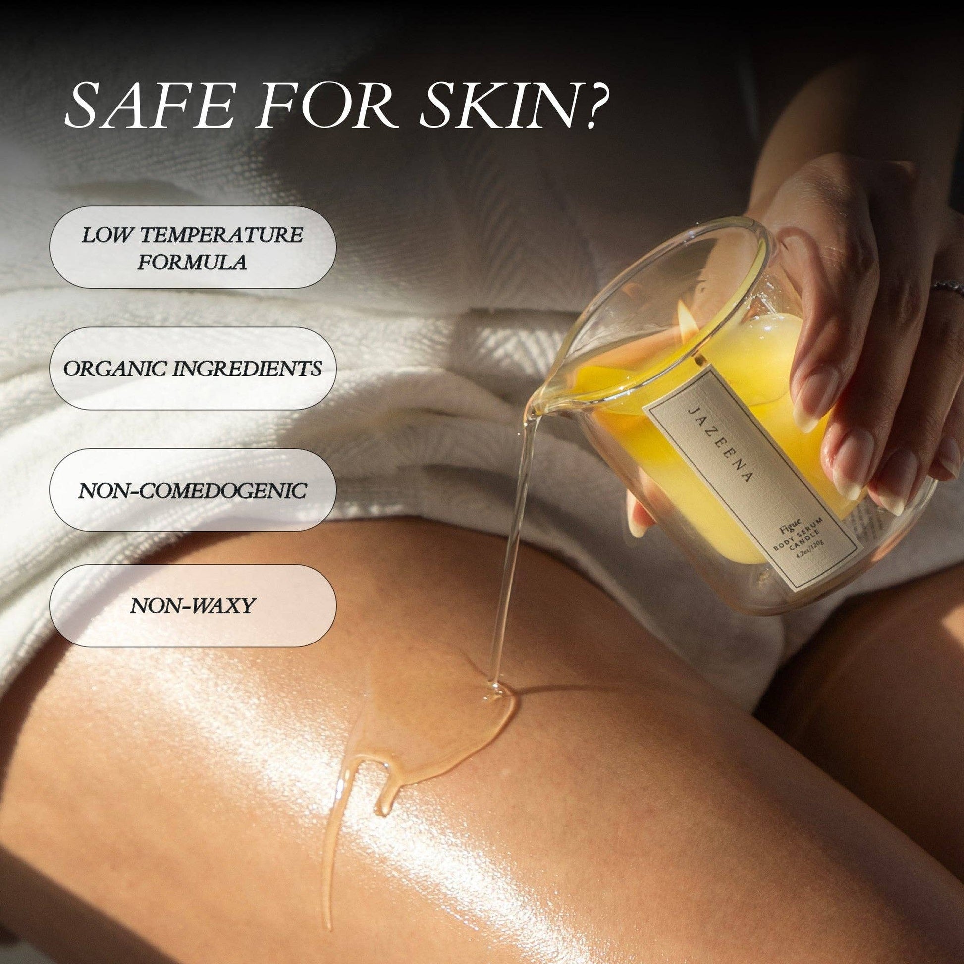 Inspired by Bali’s Abhyanga warm-oil massage, our Body Serum Candle melts into a face-grade skin treatment for the body. It feels like a light salve that warms to a pourable, luxurious oil with beautiful glide, quick absorption, and a soft, non-greasy finish. Soy-free with organic argan, camellia, jojoba, and babassu oils for nourishment and a healthy glow.